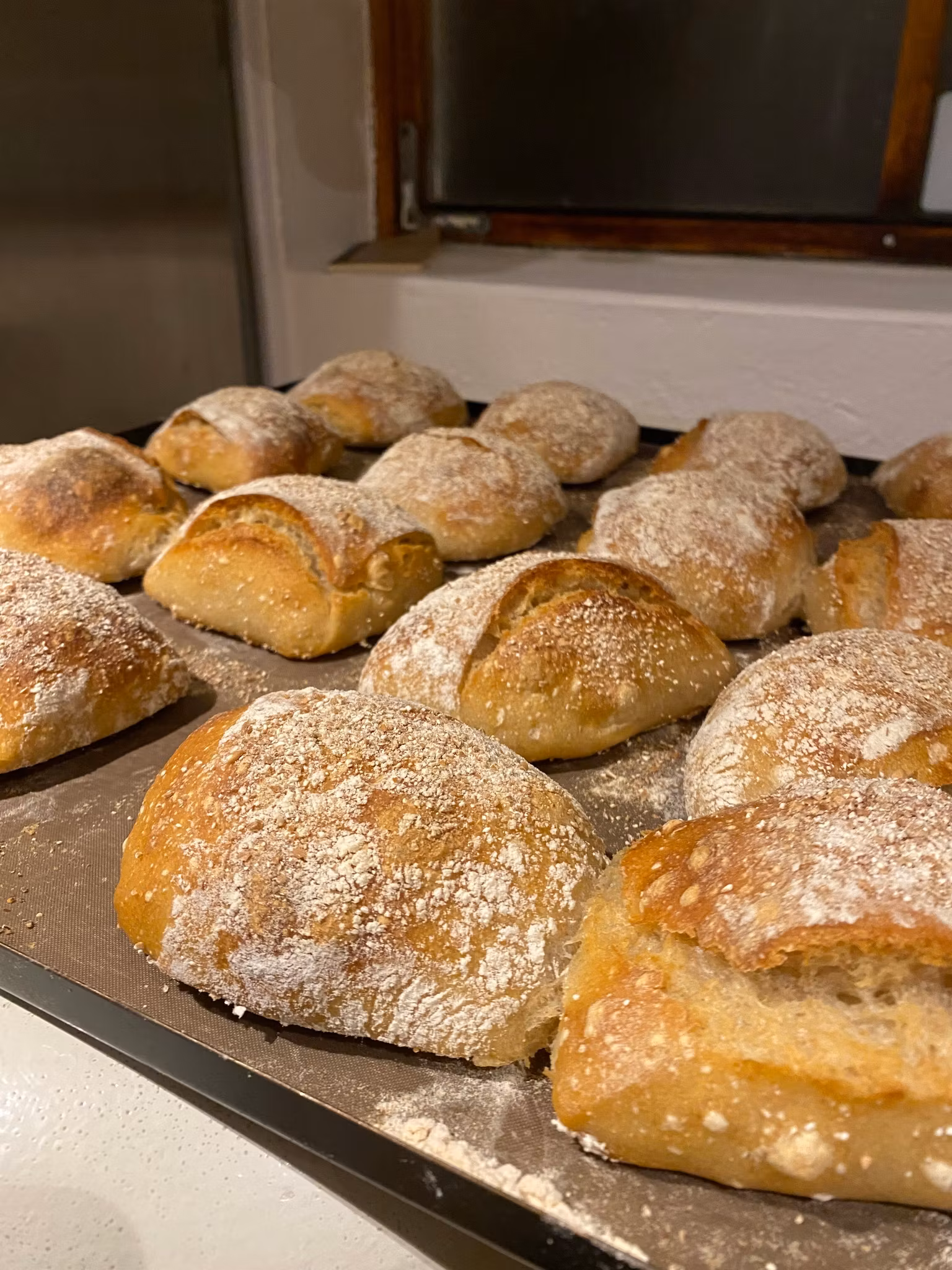 En grövre surdegsfralla på dinkel. Innehåller en större mängd egenmalt fullkornsdinkel. Toppas med krossat dinkel för lite krisp.